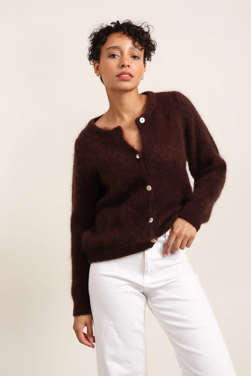 The Alex Cardigan is a Mohair, front button Cardigan with a minimalist aesthetic. The yarn has a lovely fluffy texture, and gives interest and depth to your outfit. Pair it with denim, or any trouser, easy to dress up or keep casual. Can be sourced in other colours, ask Jenn on Instagram or Facebook for pictures. Black, Navy, Light Grey, Bordeaux. Ask for pics from Jenn on Instagram or Facebook if interested, lead time of 2 additional weeks to receive of other colours.